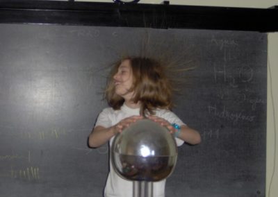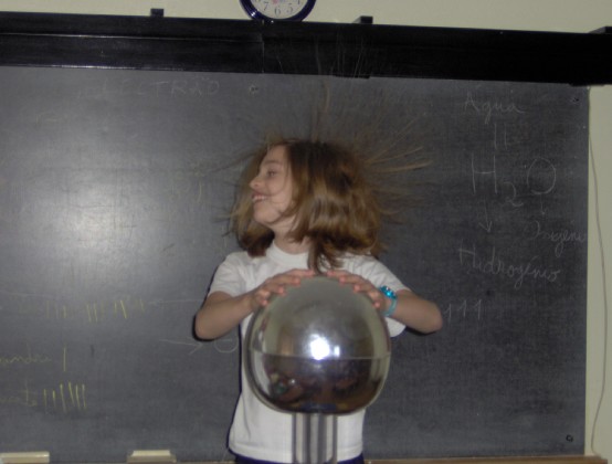 O nosso objetivo é estimular o gosto das crianças pela ciência e desenvolver o raciocínio crítico para compreenderem melhor a realidade à sua volta, através de muitas e variadas experiências, desde misturar dois líquidos imiscíveis até usar um gerador de eletricidade estática que põe os cabelos em pé!